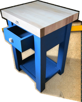 Nous vous offrons l’option de remplacer le tablier en érable de n’importe quel îlot de cuisine offert en atelier pour un semblable en pin. Vous aurez donc le style que vous désirez à moindre coût.